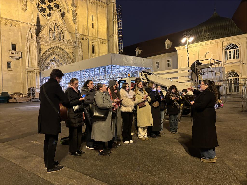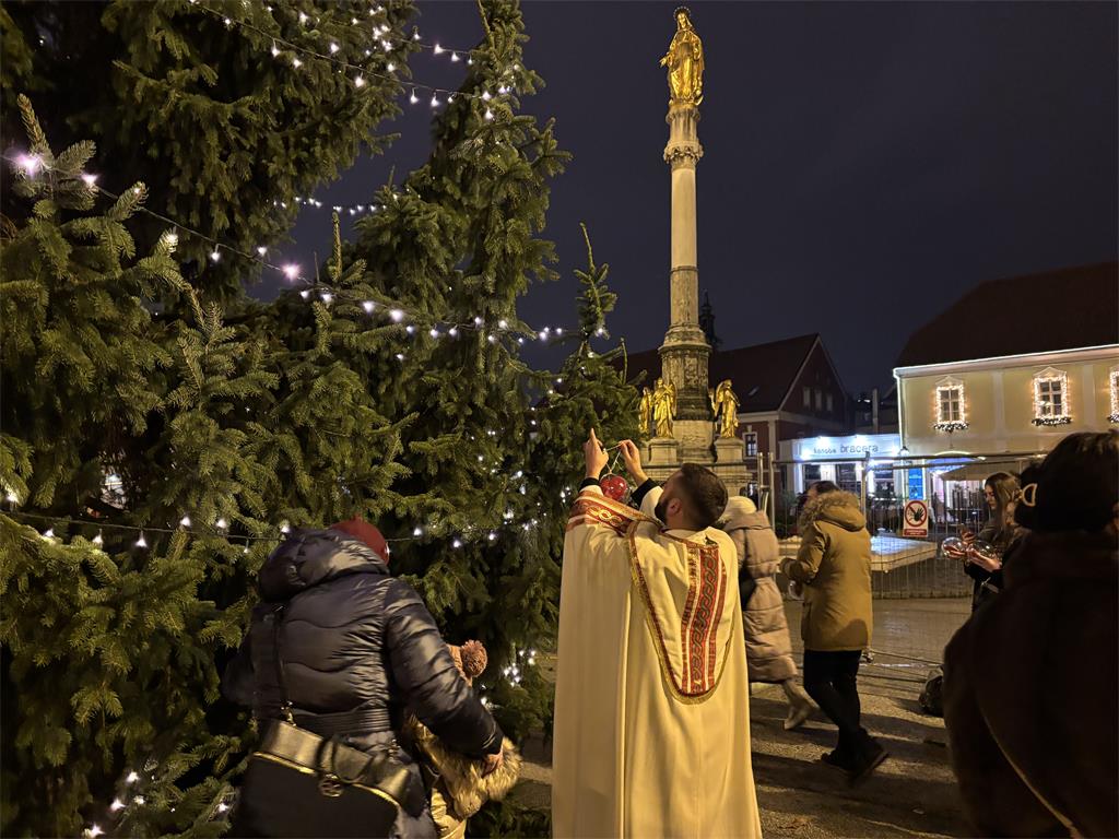 Mladi Zagrebačke nadbiskupije i drugi okupljeni vjernici okitili su bor ispred Zagrebačke katedrale u ponedjeljak 22. prosinca 2025. Molitvu je predvodio povjerenik Ureda za pastoral mladih Zagrebačke nadbiskupije vlč. Filip Šešek, a pjevanje Nadbiskupijski zbor mladih.
