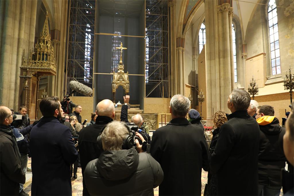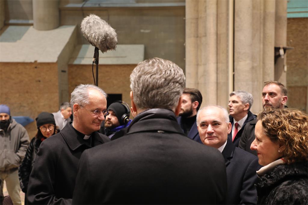 Ispred zagrebačke Prvostolnice dočekao ih je rektor mons. Zlatko Koren te predstavio autora i voditelja projekta obnove konstrukcije zagrebačke katedrale profesora Damira Lazarevića i njegov tim s Građevinskog fakulteta Sveučilišta u Zagrebu, koji je za ovaj projekt