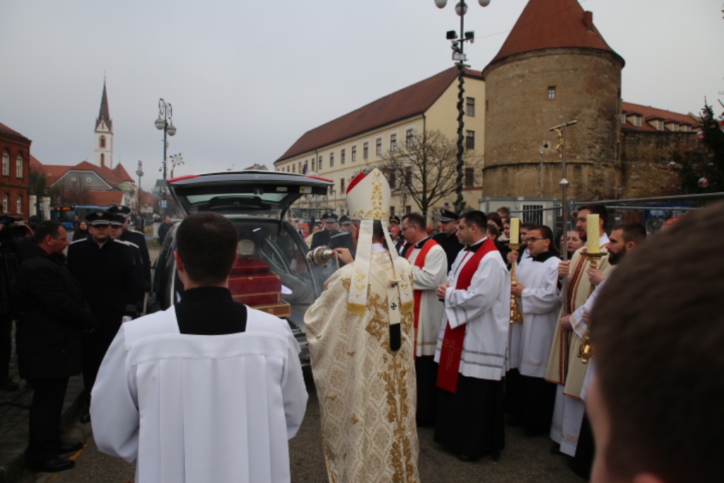 relikvije bl. Alojzija Stepinca koje su vraćene u Zagreb nakon što su mjesec dana bile izložene vjernicima na štovanje u Blaženikovoj rodnoj Župi Presvetoga Trojstva u Krašiću. Prije povratka u Zagrebačku katedralu relikvije su se zaustavile u Karmelu u Brezovici gdje je slavljena sveta misa. U svečanoj procesiji relikvije su u katedralu unijeli članovi počasne postrojbe Vatrogasne zajednice Grada Zagreba.