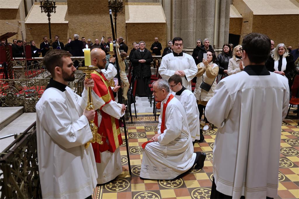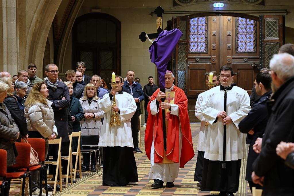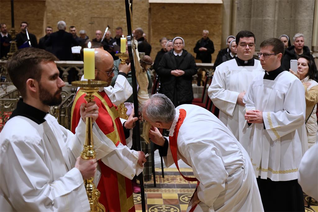 Zagrebački nadbiskup mons. Dražen Kutleša predvodio je na Veliki petak, 3. travnja, Službu Muke Gospodnje u Zagrebačkoj katedrali u zajedništvu sa zagrebačkim nadbiskupom u miru kardinalom Josipom Bozanićem, pomoćnim biskupima mons. Ivanom Šaškom, mons. Mijom Gorskim, mons. Vladom Razumom i mons. Markom Kovačem, kanonicima Prvostolnog kaptola zagrebačkog, prebendarima Prvostolne crkve zagrebačke, odgojiteljem u Nadbiskupskom bogoslovnom sjemeništu vlč. Josipom Đurinom te nadbiskupskim tajnikom vlč. Domagojem Topićem.