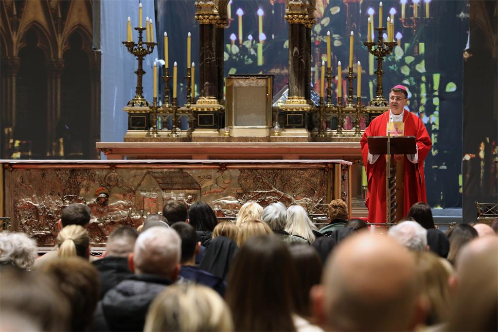 homiliju je izrekao pomoćni biskup mons. Ivan Šaško. Naglasio je kako smo danas "dionici žrtve koja se s gledišta prolaznoga života čini kao krajnji čin poraza i slabosti, ali koja u stvarnosti otkriva pravu Kristovu moć, snagu koja se ne može izmjeriti snagom svijeta, jer nema metra za bezmjernost ljubavi ni za bezuvjetno praštanje."