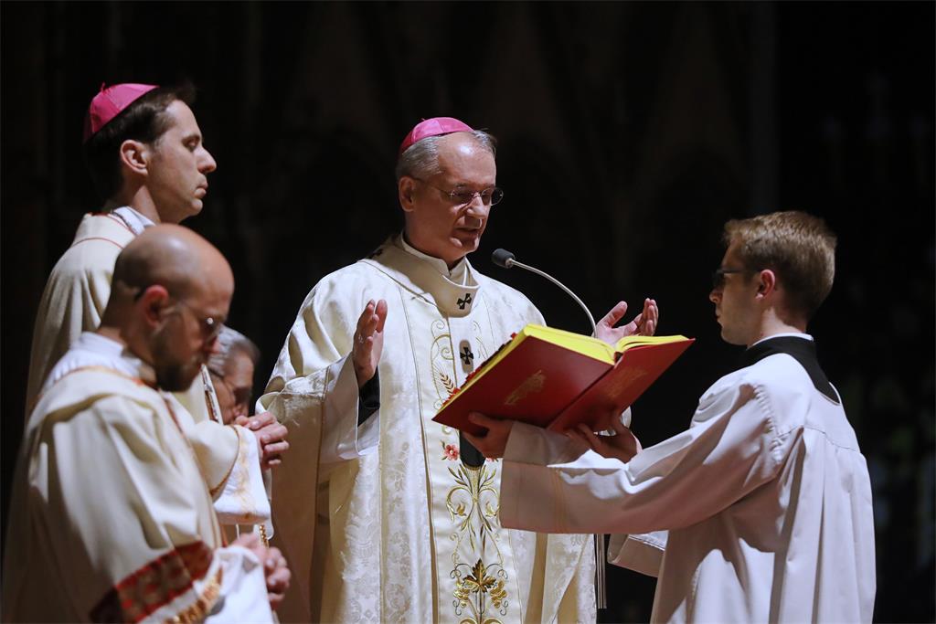 Vazmeno bdjenje započelo je Službom svjetla kojom se uskrsna svijeća - svjetlo Kristovo u procesiji unijela u Zagrebačku prvostolnicu. Potom je otpjevan Hvalospjev uskrsnoj svijeći te je uslijedila Služba riječi.