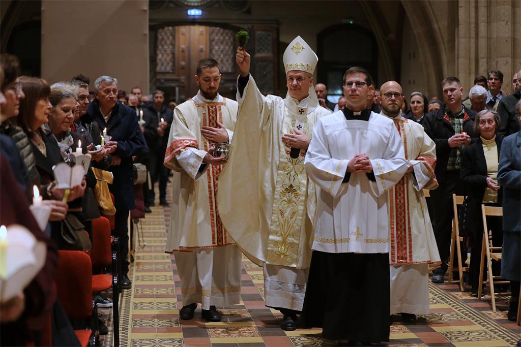 Nakon homilije uslijedio je treći dio Vazmenog bdjenja - krsna služba u kojoj je nadbiskup Kutleša blagoslovio vodu te su obnovljena krsna obećanja.
