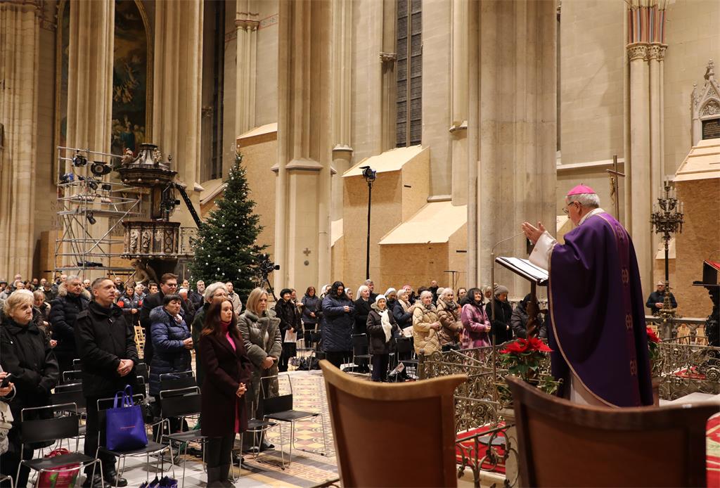 Istaknuvši da je katedrala majka svim crkvama u Nadbiskupiji, središte duhovnosti i izvor naučavanja, biskup Gorski rekao je da joj i ime dolazi od katedre, predsjedateljskog mjesta i mjesta naučavanja. "Zadnji je dan iščekivanja koji će noćas prijeći u susret. Već osjećamo kako je nebo dodirnulo zemlju, osjećamo svoju grješnost i Božju dobrotu koja dodiruje dubine našega srca i podiže prema nebesima. Bog je doista s ljubavlju pripremio dar ljudskom rodu. Stoga rođenje našega Spasitelja čekamo u poniznosti i siromašni duhom kako bismo ga prepoznali i mogli prihvatiti", rekao je biskup Gorski.